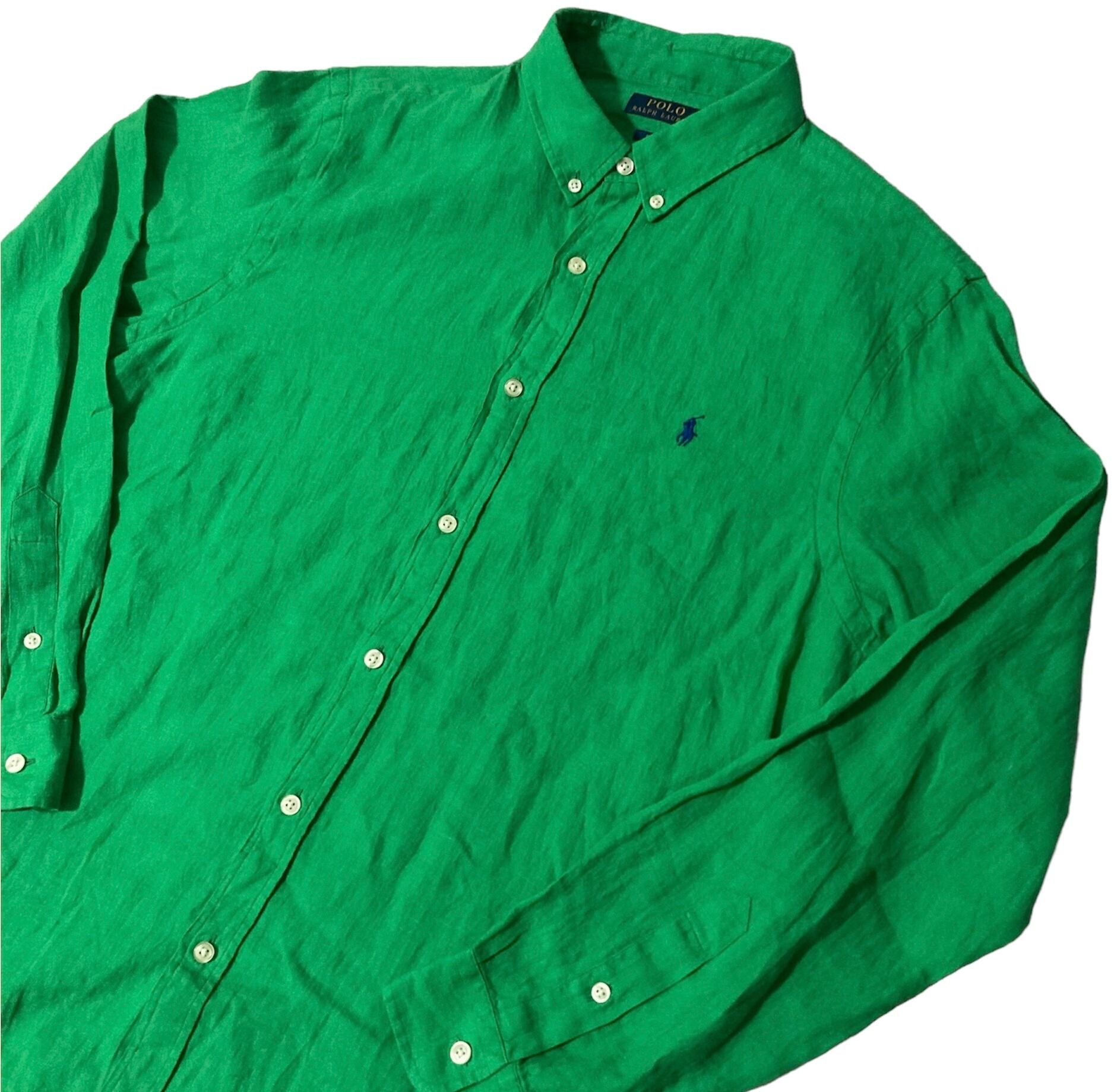 00's "POLO RALPH LAUREN" Linen Green shirt ポロラルフローレン リネンシャツ 緑 麻 XL
