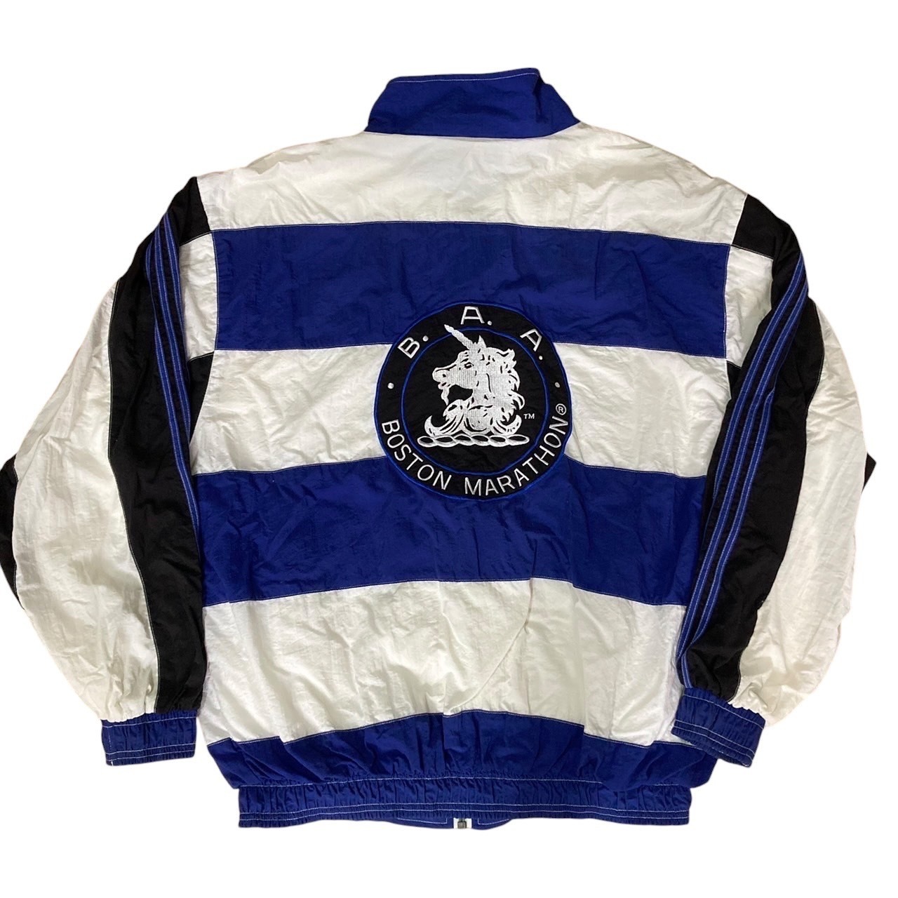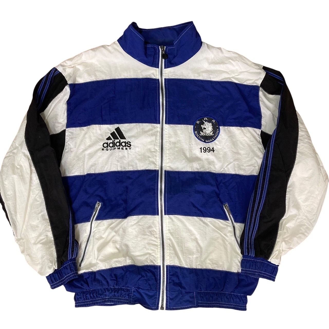 80〜90年代adidasナイロンジャケットです。adidasにしてはめちゃ珍しいデザイン。もしかしたらブートかエラー品の可能性も。銀タグが使われていますがこちらは80年代ごろから見られたものですが、胸元には90年代後半に見られたパフォーマンスロゴになるので、工場で余っていたボディを使った可能性もありえます。面白い1着なので、お好きな方はぜひ。